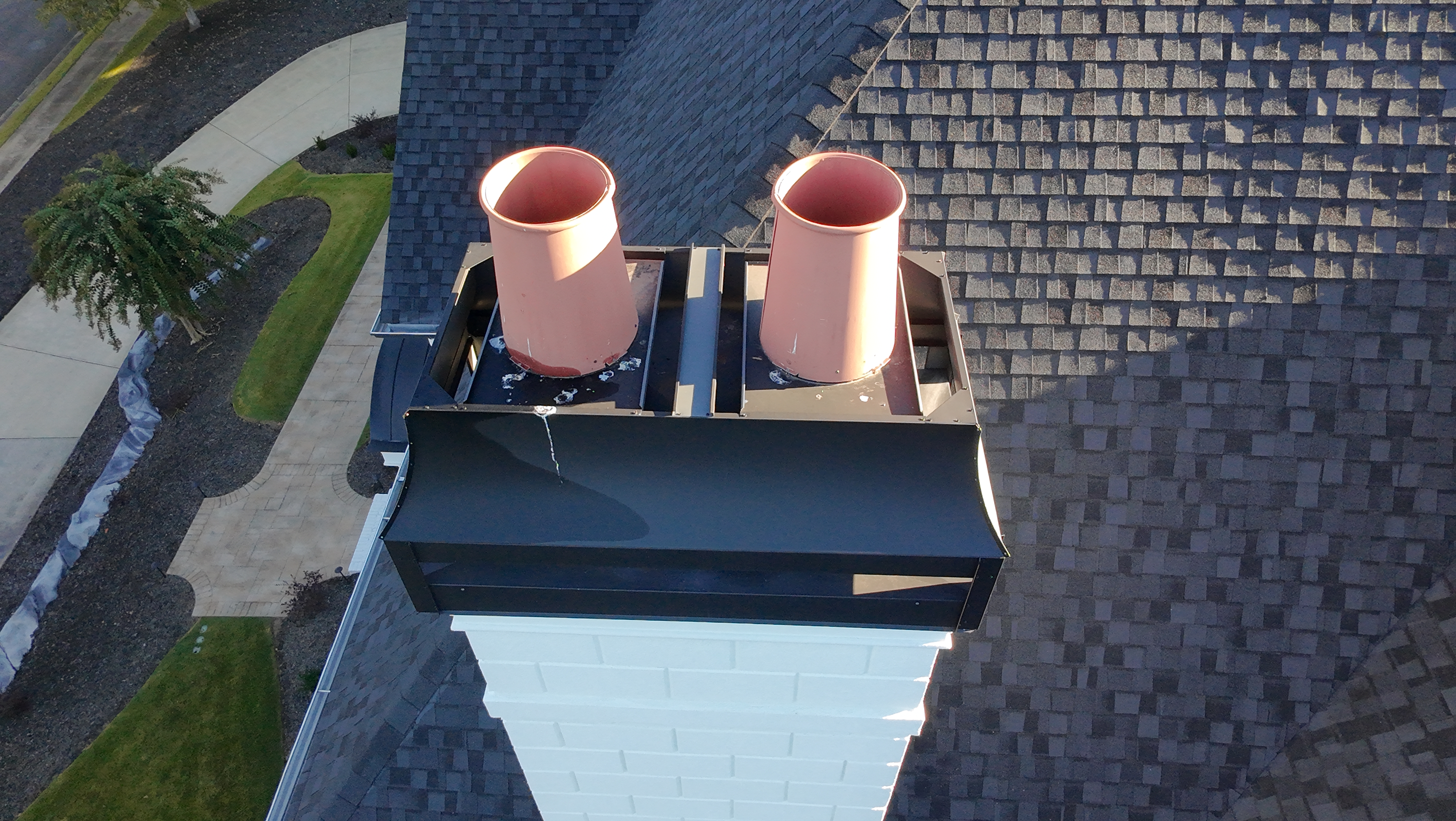 landscape, chimney/chase, flue cap, gas and dryer exhaust terminations, roofs, gutter systems, siding, brick, and flashing.